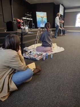 We believe in treating our kids like full members of the church and the body of Christ. There's no such thing as a Jr. Holy Spirit. The same Spirit that is in us adults is also in our littlest believers. We encourage our children to worship and engage with the presence of the Lord. Often, their example is a beautiful challenge to us adults! We have a children's area set up with paper, coloring sheets, colored pencils, and flags for dancing.